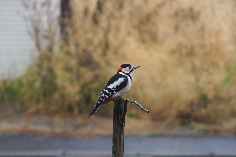 庭にシジュウカラが時々来ています。この日は、トンボが傍を飛んで行きました。