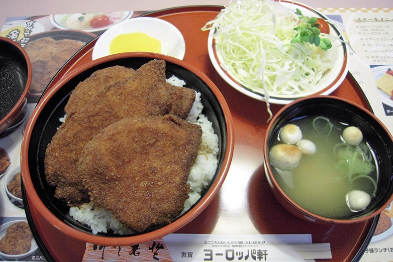 レストランうめだで、敦賀名物「ソースカツ丼」を食べる予定でしたが閉まっていたので近くのヨーロッパ軒で食べました。これで普通盛りです。