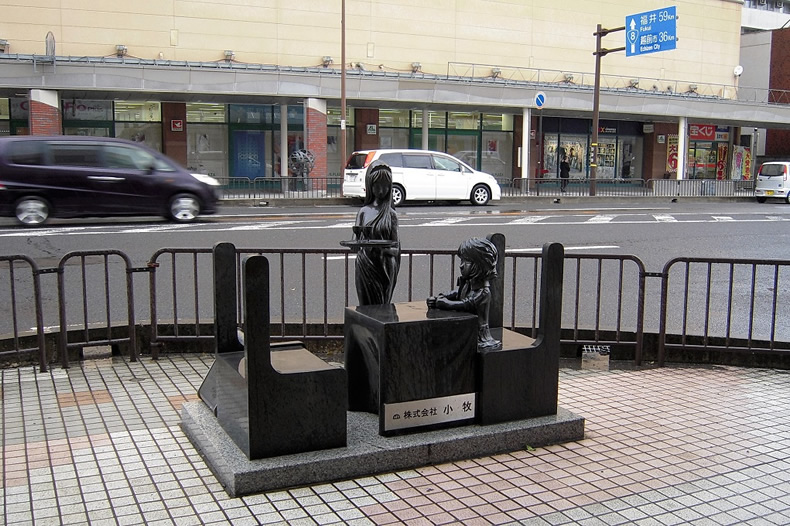 敦賀駅から気比神宮まで、銀河鉄道999と宇宙戦艦ヤマトのモニュメントが並んでいます。