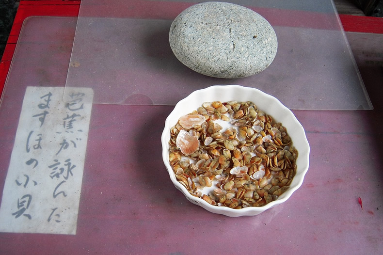 もう一つ「浪の間や小貝にまじる萩の塵」の句碑も。
