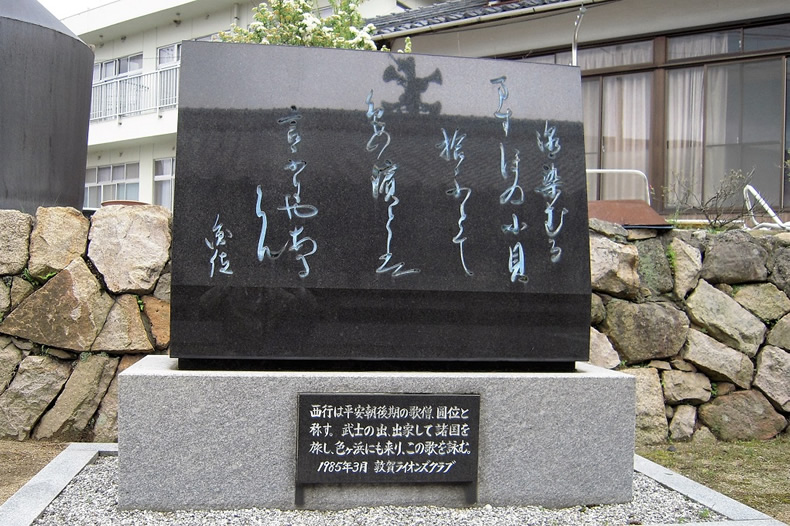 ここに西行の「汐染むるますほの小貝ひろふとて 色の浜とはいふにやあるらむ」の歌碑も建っていました。