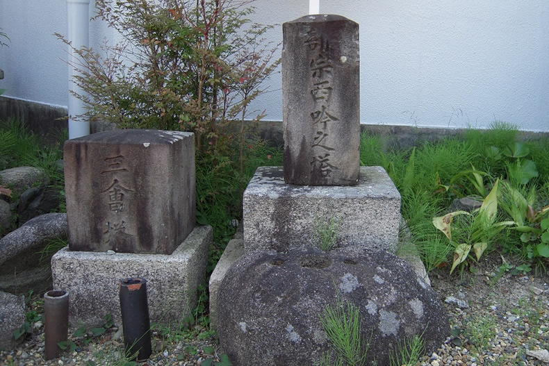 摂津に住んだ俳人水田西吟(みずたさいぎん) の塔がありました。1648年頃〜1709年といいますから、芭蕉と同じ頃の人です。