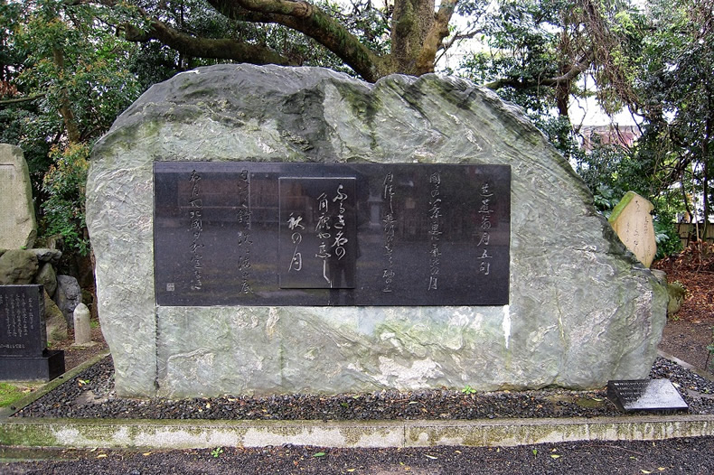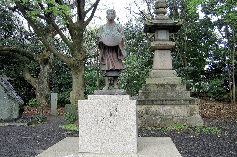 芭蕉像や句碑があります。像の下の句は「月清し遊行(ゆぎゃう)のもてる砂の上」。