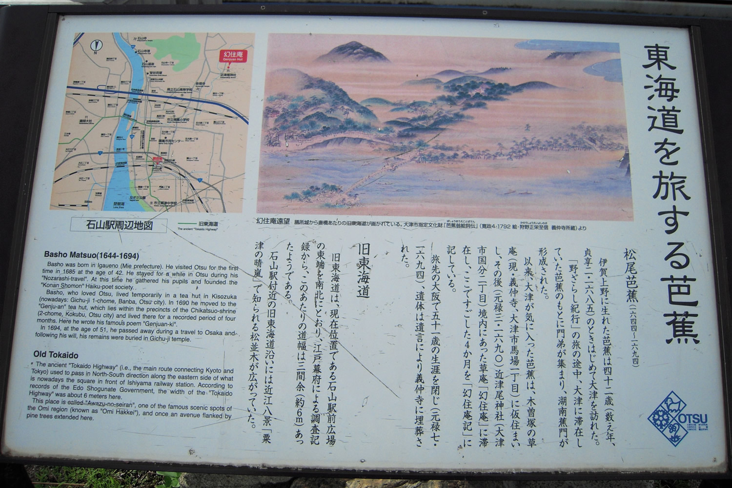 芭蕉は、奥の細道の旅を終えた翌年の元禄 3 (1690) 年 4 月から 7 月までのおよそ 4 ヶ月間をここ幻住庵で過ごし、有名な俳文「幻住庵記」を書きました。
