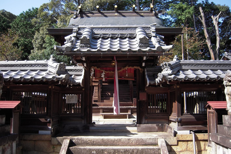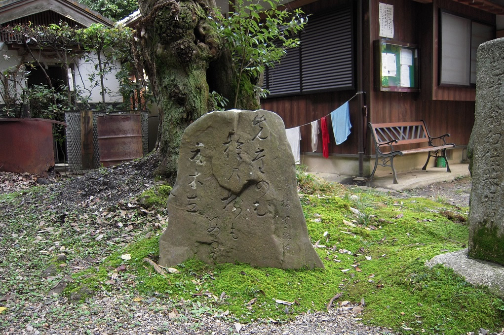 【写真No5.近津尾神社】 この神社の境内に、幻住庵がありました。今は幻住庵跡の石柱が建っています。