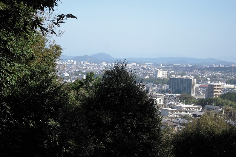 芭蕉は幻住庵からの眺望を細かに述べています。が、今見えるのはこのようなものです。琵琶湖は左側奥ですが見えません。ビルの間を新幹線が走っていました。