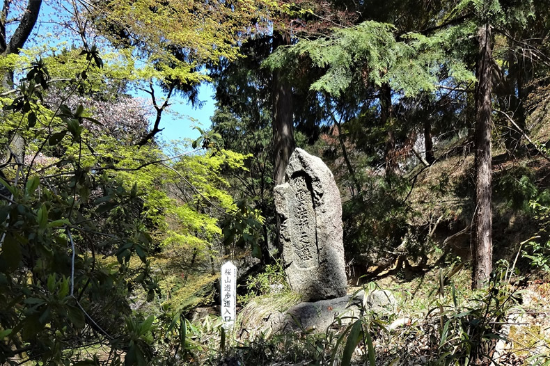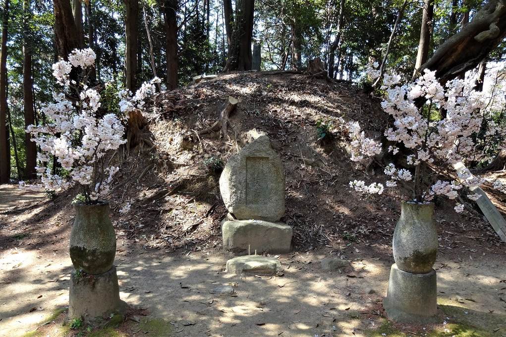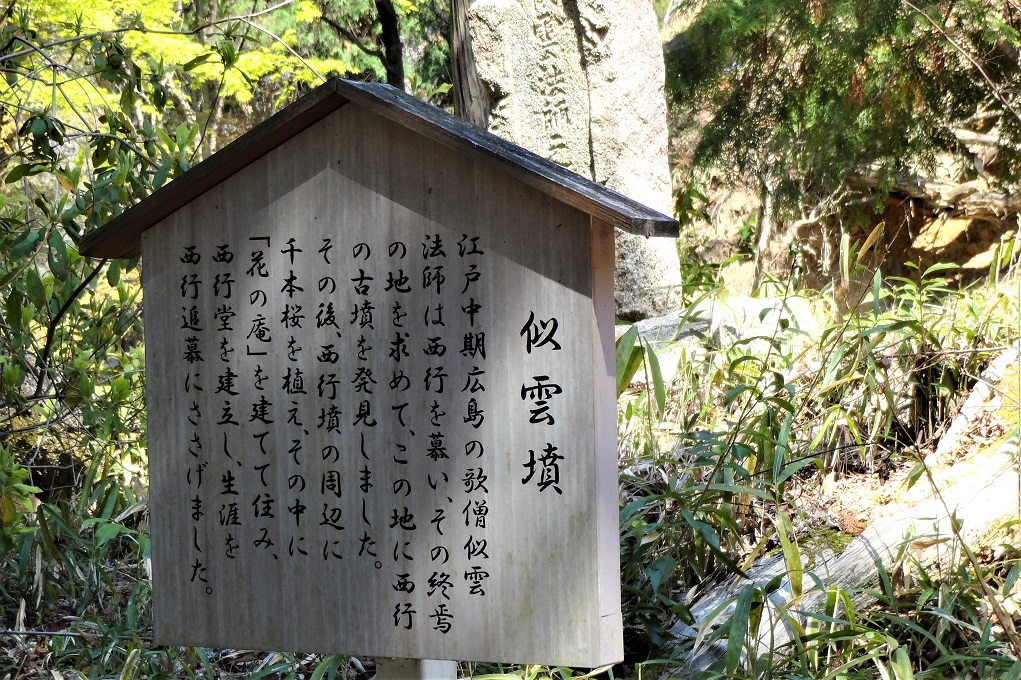 さらに上っていくと平坦な所に出ます。ここに西行の墓があります。桜の木はわずかしか立っていません。