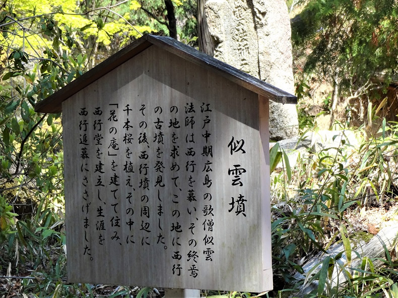 西行墳と向かい合った所に、似雲(じうん)のお墓があります。江戸時代の歌人であり僧であった似雲が、西行の墓を発見したそうです。