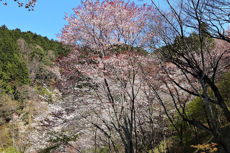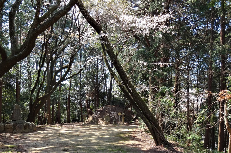 似雲墳の横から桜山へ上る道が続きます。途中の谷側に桜が咲き誇っていました。