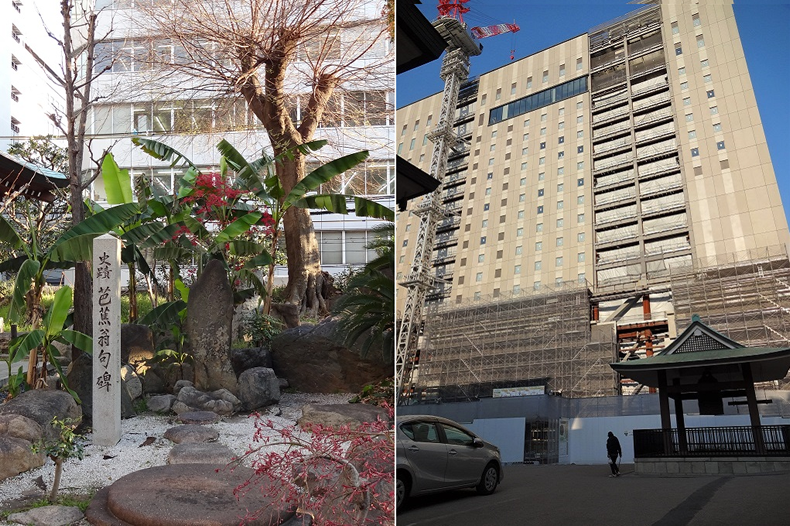 帰途、芭蕉終焉の地向かいの南御堂に寄りました。御堂会館を建て替え、大阪エクセルホテル東急を核とした複合施設の工事中と聞いていたので。