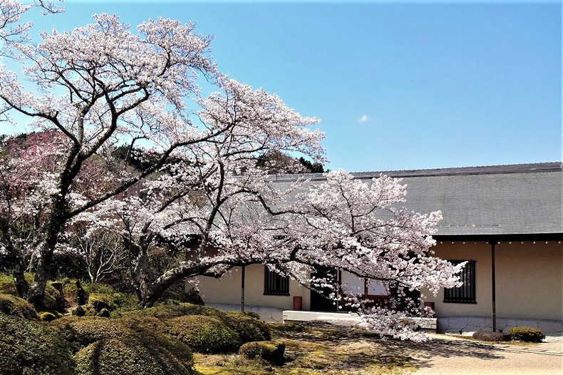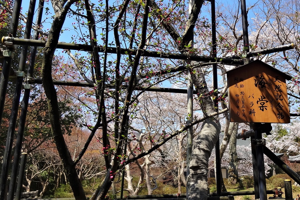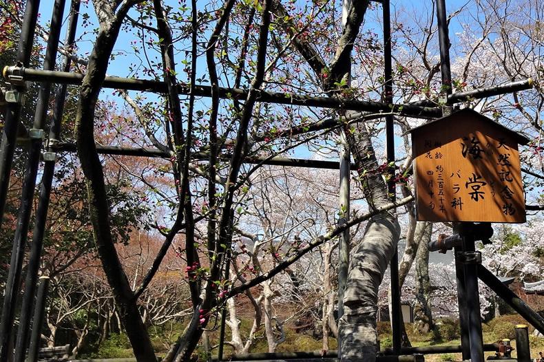 本坊見学には入館料が必要です。本坊庭園にある海棠(かいどう)は、天然記念物に指定されています。花の見頃は4月中旬ということです。