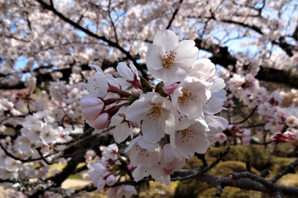 接近して桜の花を撮りました。ウグイスが囀り、ヒヨドリが飛び交っていました。