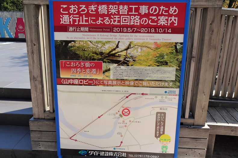 こおろぎ橋が架け替え中ということを、昨日宿に着いてから知りました。工事中の橋を