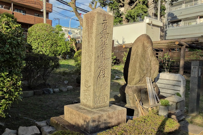 歌碑の向かって左側面に妙の、右側面に西行の歌が刻まれています。妙は、西行と遭った後出家して光相 比丘尼(びくに)となり80歳で亡くなったといわれています。