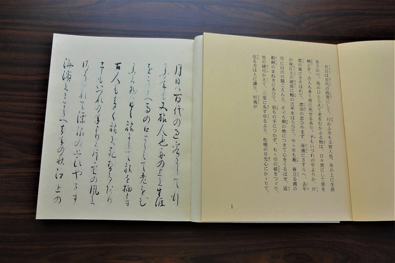 ページを開くと、「月日は百代の過客にして、行きかふ年も又旅人也。・・」の有名な文が書