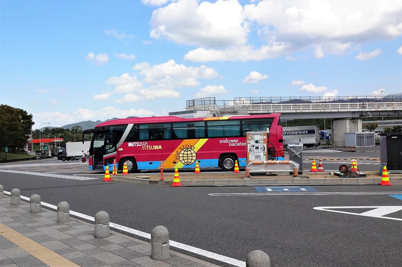 名神高速道の多賀SAで30分ほど休憩しました。写真のバスに乗車です。30名ほど乗っていました。