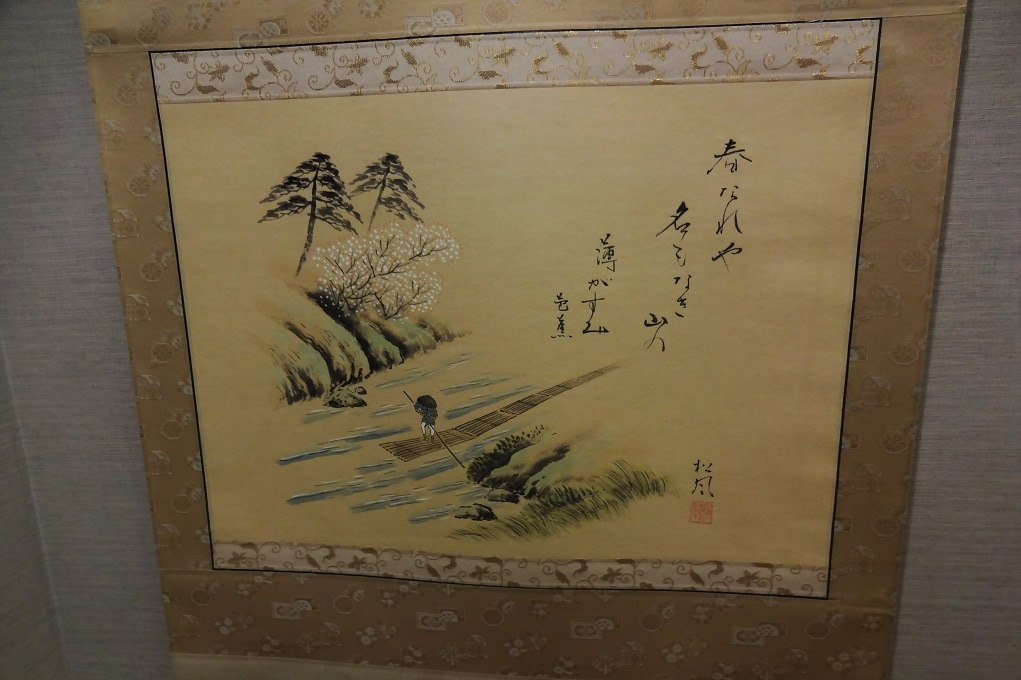 横の掛け軸を見ると芭蕉の句が書かれていました。この句は、西岸寺を訪ねる前に奈良の道で詠まれたことが分かりました。