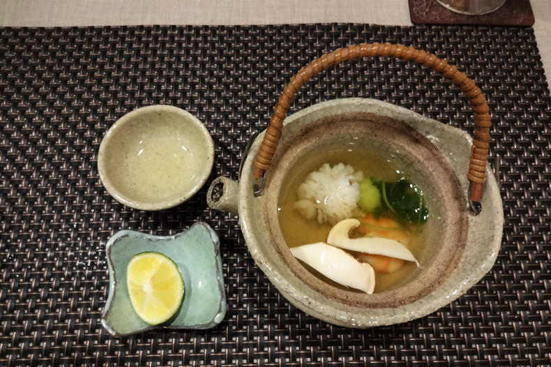 土瓶蒸しには松茸、鱧、銀杏などが入っていました。