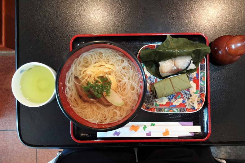 門前の店で、「柿の葉寿司とにゅうめん」の昼食をとりました。08年のとき食べた店は休業していました。