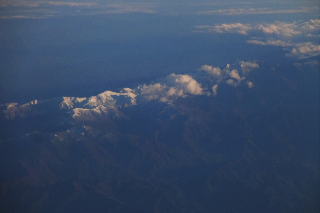 今日は空から景色を見ただけです。曇っていましたが新潟付近から地上が見えてきました。佐渡島上空です。上部の柏崎付近はよく見えません。