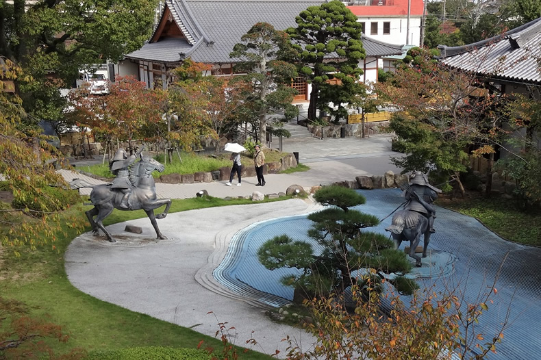 一の谷での 平敦盛 と 熊谷直実 の一騎打ちの場面を再現しています。