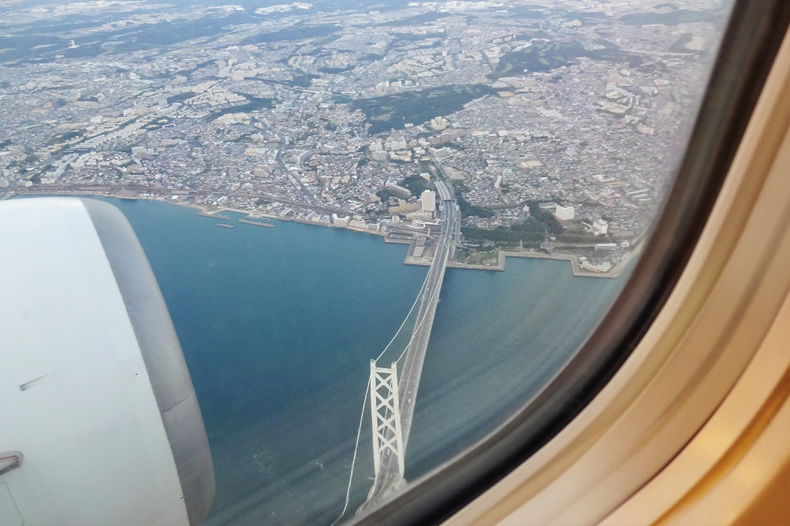 神戸空港に近づくと真下に 明石大橋 が見えました。