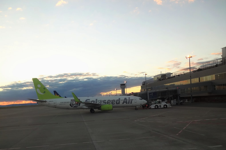 乗ってきたエアドゥと10月3日に共同持株会社を設立したと機内で案内していました。