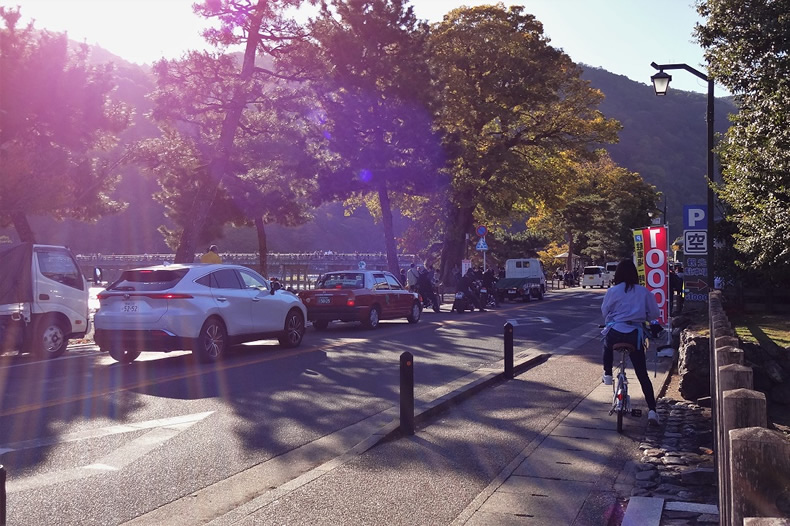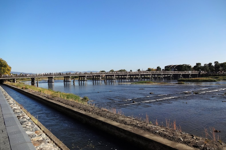 桂川下流に向かって撮った渡月橋です。逆光になりませんでした。