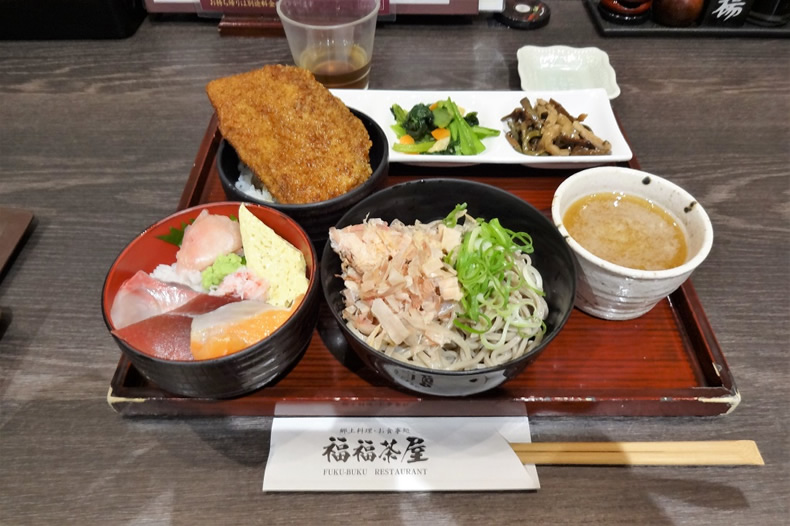 食べたのは、ソースカツ・おろしそば・海鮮丼のセットです。
