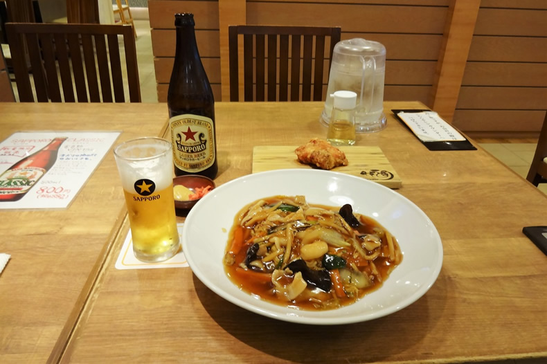 【写真:No2 ゴジュウカラ】 新千歳空港で昼食をとりました。小樽焼きそば を初めて食べました。ビールはお気に入りの サッポロラガー です。