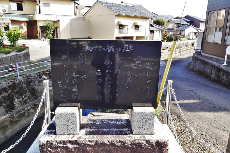昔のこの橋は半分が石材、半分が木材で造られていて奇橋として知られていたそうです。また、橋を南に渡った近くに橘曙覧(たちばなあけみ)の生家跡があることを帰ってから知りました。