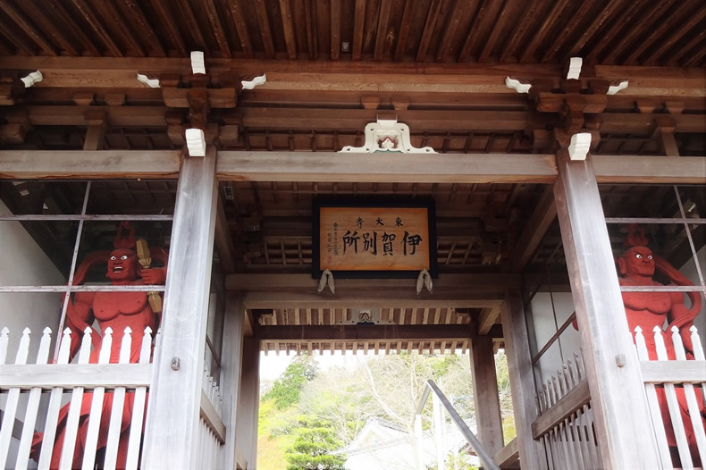 【写真:No14 4.15大門-1】 門の下には伊賀別所と書かれています。東大寺の七別所の一つです。