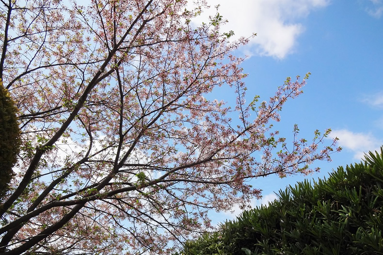 ここの縁台に腰掛けさせてもらい散る桜の花をしばらく見てきました。
