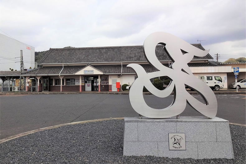 駅前のモニュメントは「忍」の字を後ろから見た形です。