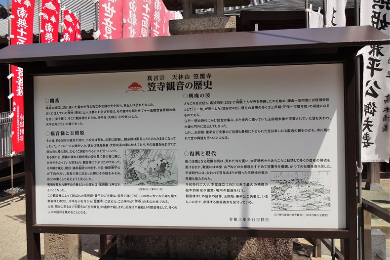 【写真:No43 4.17本堂】 雨に濡れている観音像に娘が自分が被っていた笠をかけてあげた、ということから今の笠寺につながる歴史があります。
