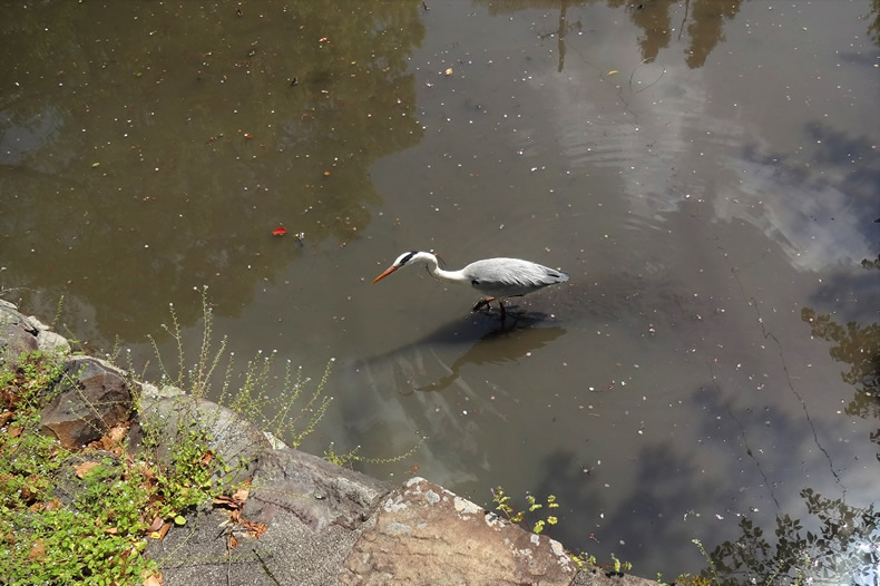 【写真:No45 4.17山門】 放生池にアオサギが1羽いました。