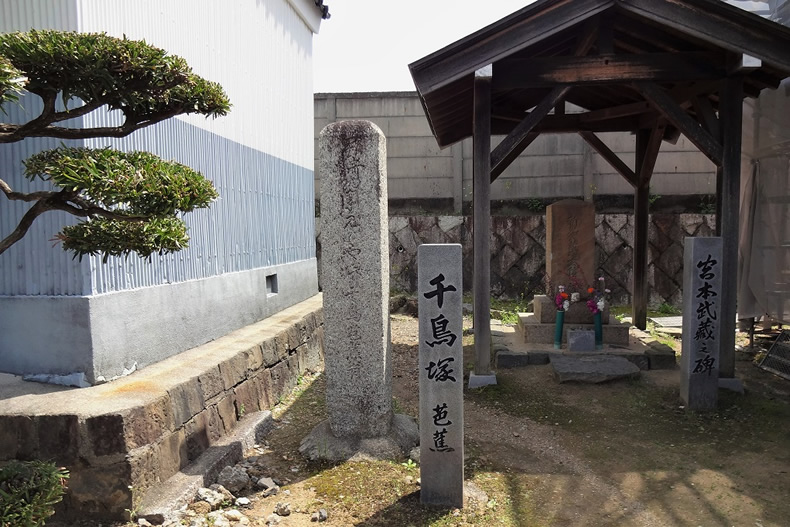 隣に宮本武蔵の碑がありました。名古屋に武蔵が滞在していた時、この寺に住んでいたことによるようです。