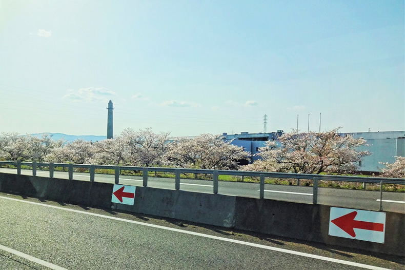 【写真:No40 4.16俳聖殿】 14時27分発の高速バスで名古屋へ向かいました。沿線の桜は花が落ちていました。