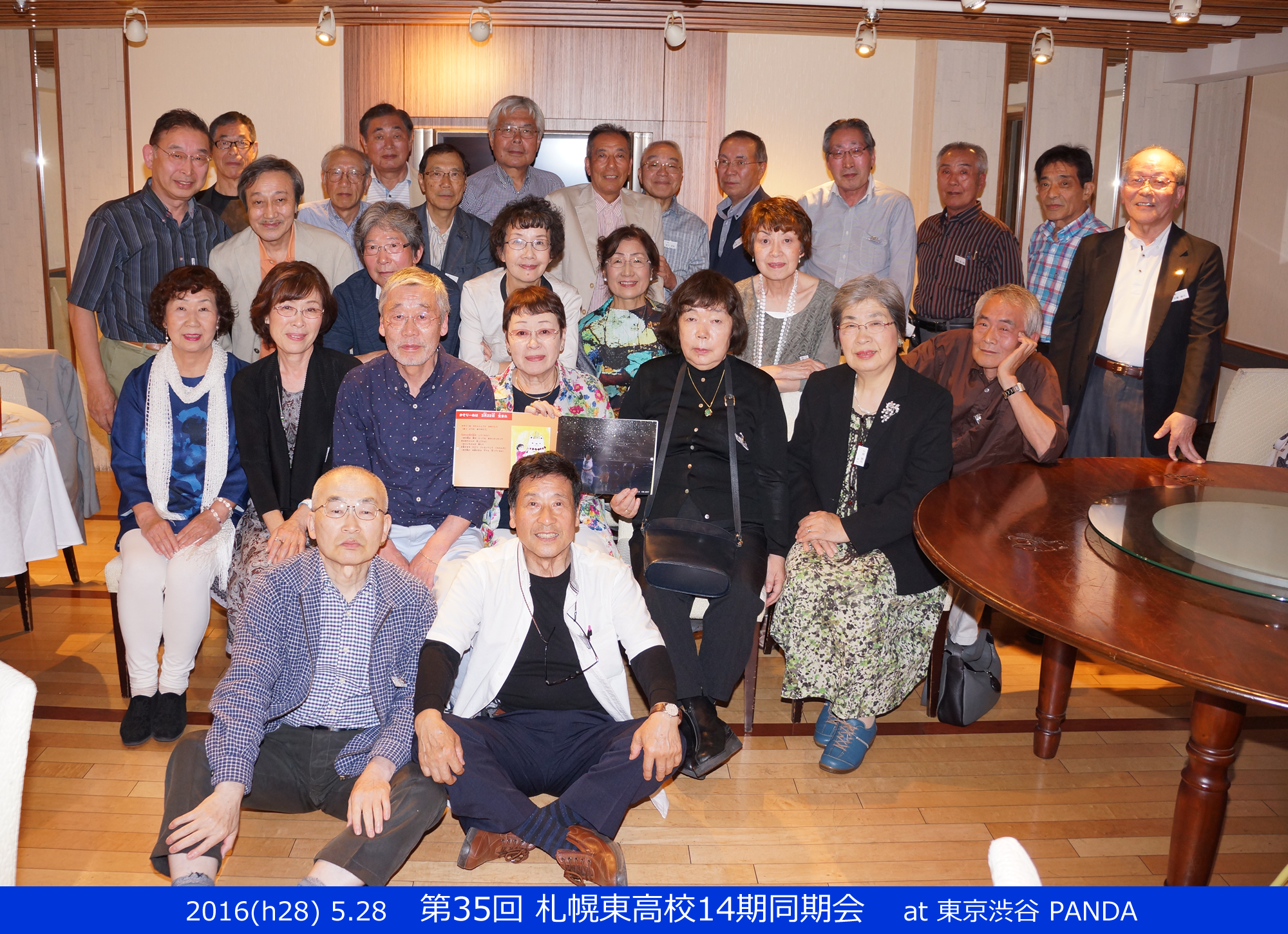 | 感想 | 若者の町、渋谷にて第35回目の札幌東高14期同期会を開催させていただきました。 故郷札幌から6名が出席され、計27名の老老男女が集いました。各人の健康と近況等を、美味しい料理と酒を酌み交わしながら、約3時間半語り合う事ができました。誠に嬉しい限りです。 もう既にあの世の世界に旅立たれた同輩も約70名もいらっしゃるとの事、寂しい限りです。物故者に黙祷を捧げ、有意義な時間を過ごさせていただいたことは 感謝の何ものでもありません。この同期会がずーっと続く事を祈り、来年また再会を約束をして散会させていただきました。 幹事の不手際をお詫びしつつ、御礼を申し上げます。 |