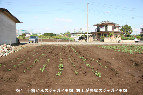 でもこのジャガイモ畑は少し低地で、一時、水没しました。このためどれくら収穫できますやら??