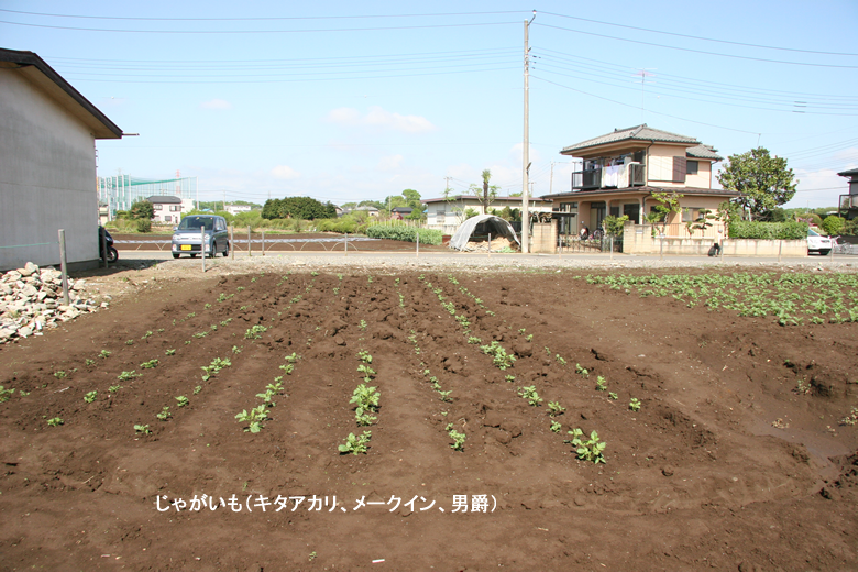 現時点(4月25日)で、70cm×13m の畝(うね)が 10 列です。上方に拡張可能です。