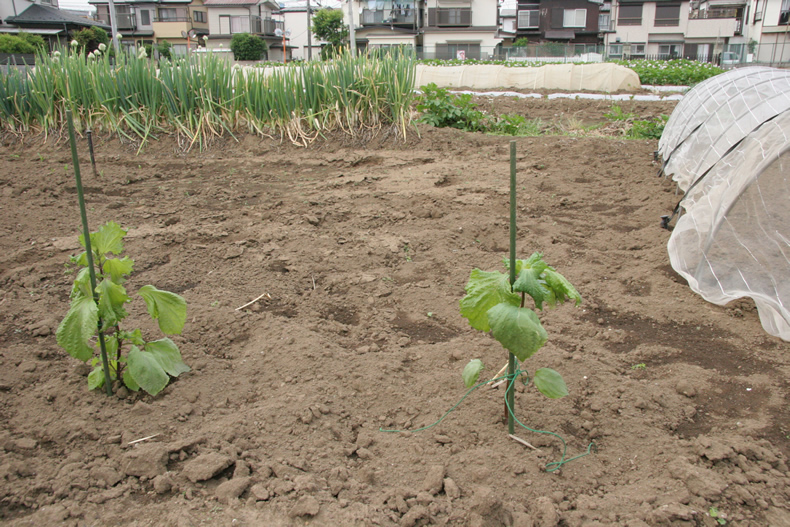 4月15日に苗を植えたカボチャもようやく成長を始めました。
