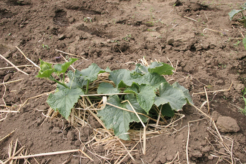 4月16日に苗を植えたキューリも成長をはじめました。地面を這うタイプのキューリです。