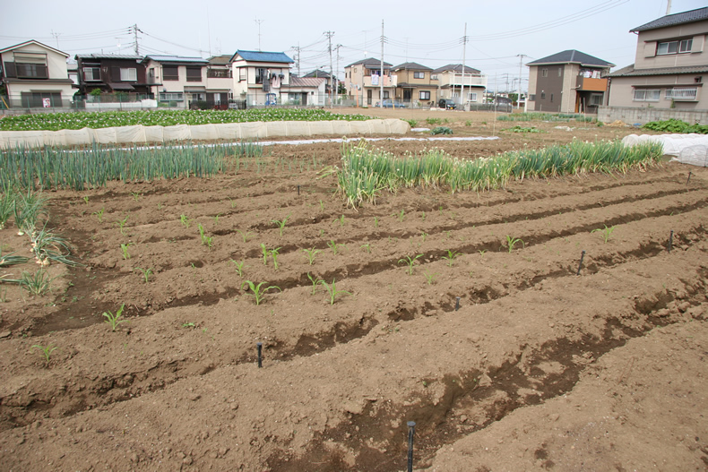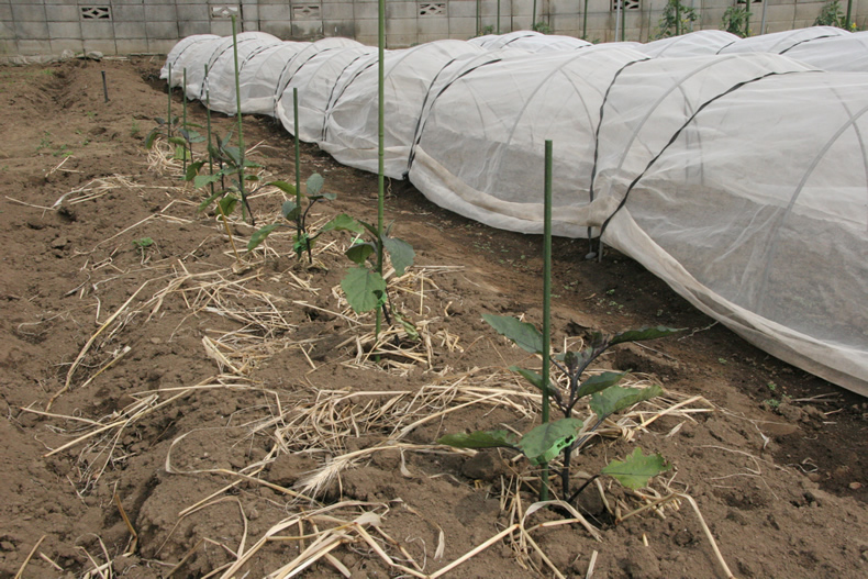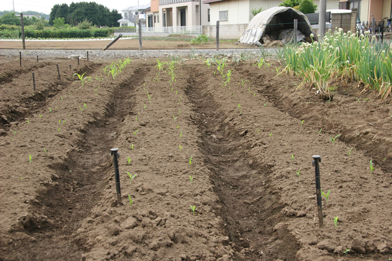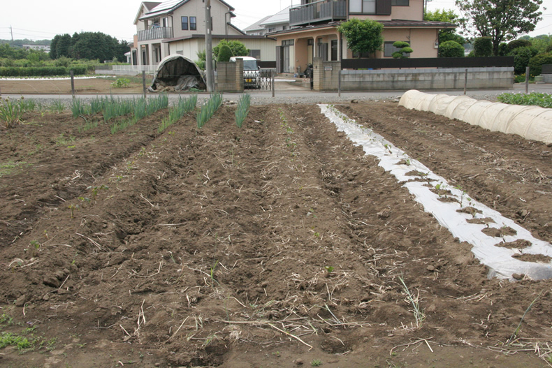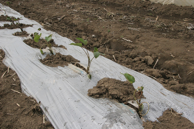 畝1列には、マルチをしきました。2列はマルチをしませんでした。収穫時期を遅らせるためです。