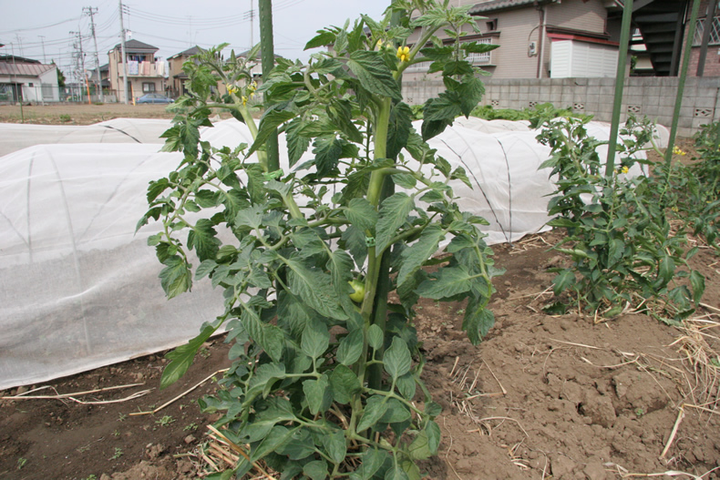 4月15日に苗を植えた植(中玉、ミニトマト)が実をつけはじめました。