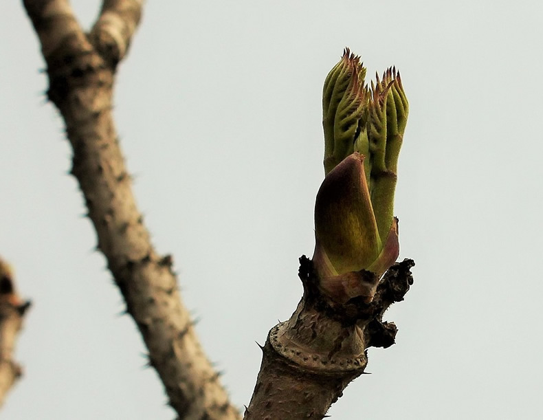 1) 鉄道沿線のこの場所を発見したのは 1991 年 5 月です。蕗を採りに行って偶然タラノキを見つけました。