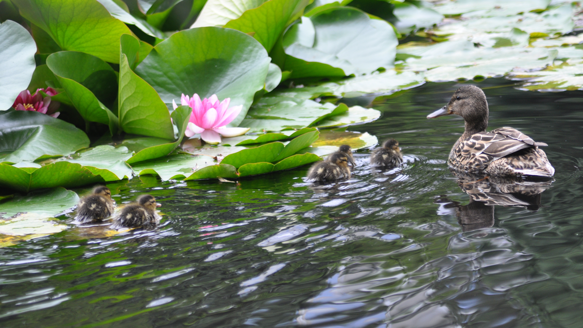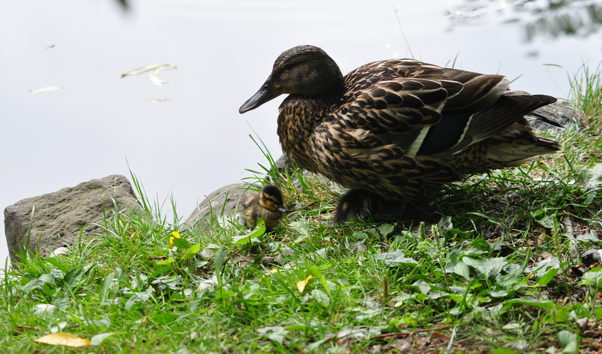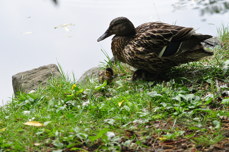 池から上がってのんびり。カラスに見つからないように・・・・・