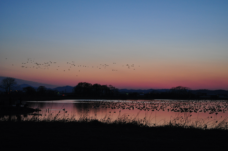 夕方、宮島沼に戻って休み明朝また一斉に飛び立っていきます。