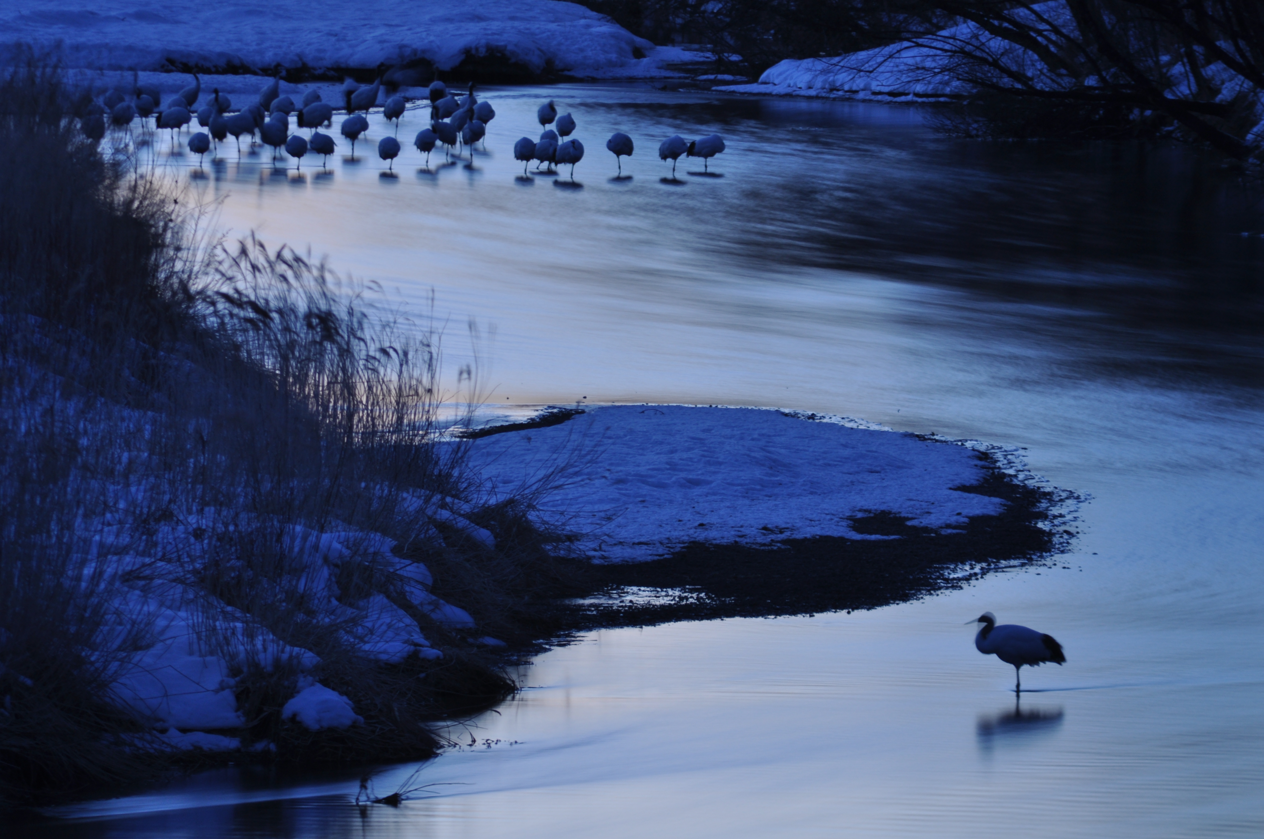 鶴たちは肉眼ではぼんやりしか見えません。
