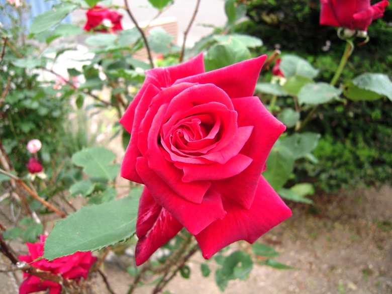 庭のバラが咲き始めました。赤いバラは庭の主でもう 30 年以上育っています。